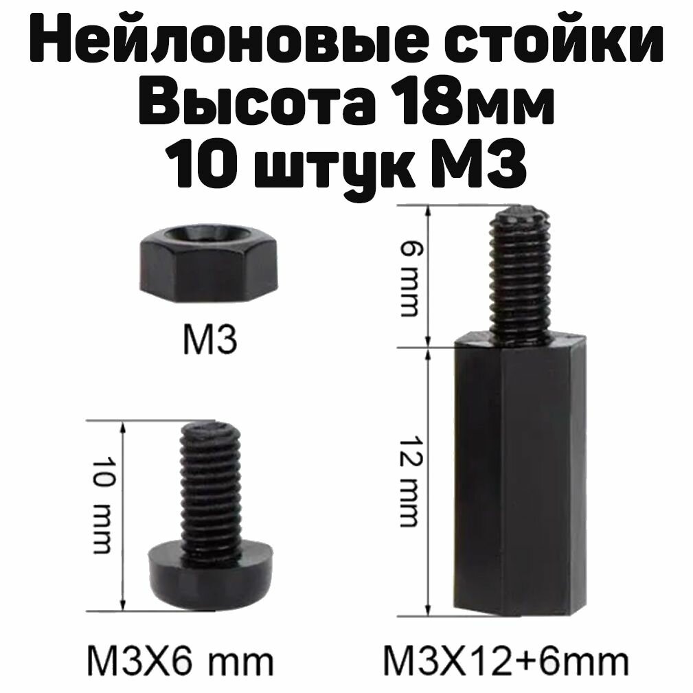 10 цен на Набор нейлоновых стоек для печатных плат (10 штук) М3 высота 18мм (папа-мама)