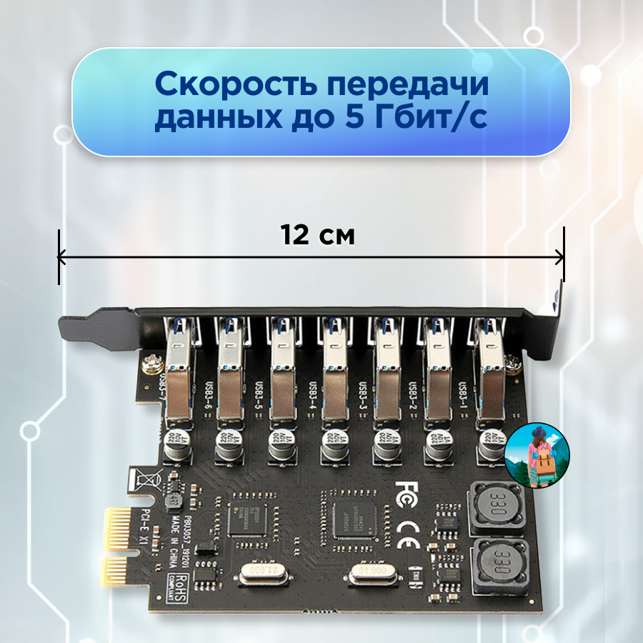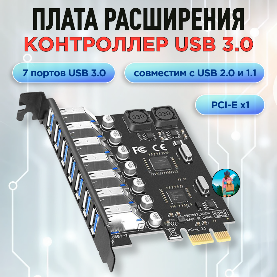 Плата расширения контроллер USB 3.0, 7 портов, PCI-E x1 информация: