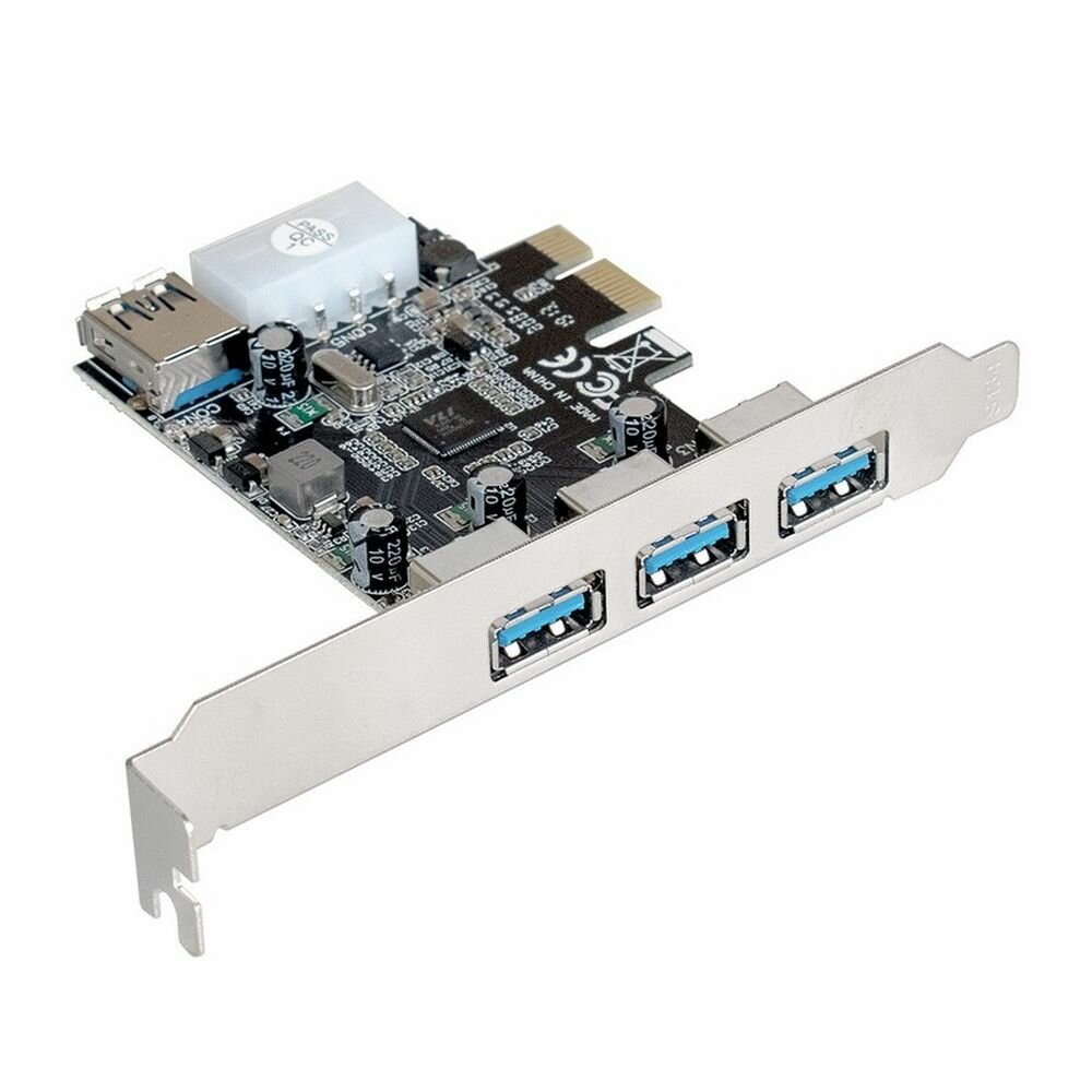Плата расширения ExeGate EXE-367 (PCI-E x1 v2.0, 3*USB3.0 ext. + 1*USB3.0 int, разъем доп. питания, VIA информация: