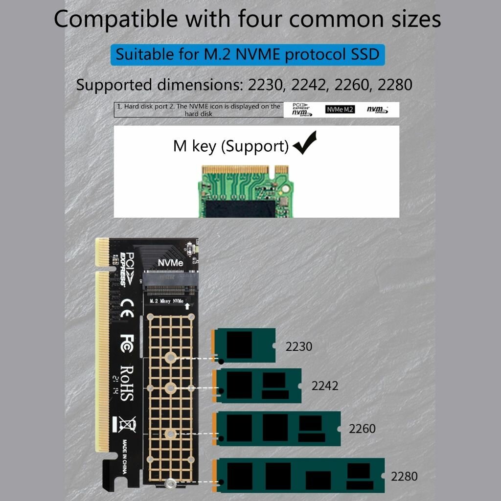 Адаптер M.2 NVME к PCIe 4.0 x16 NVMe SSD Плата расширения PCI-e Конвертер жесткого диска для настольных ПК информация: