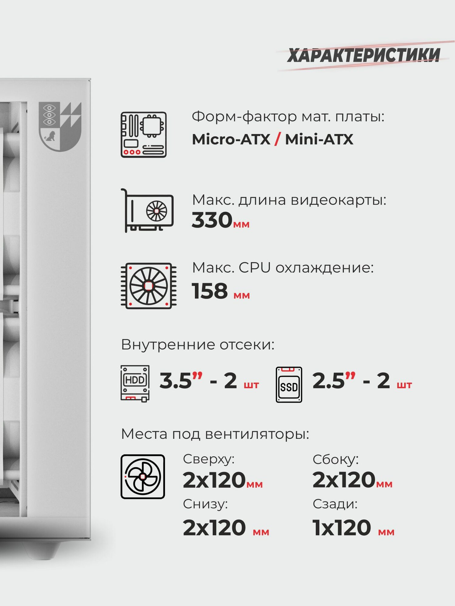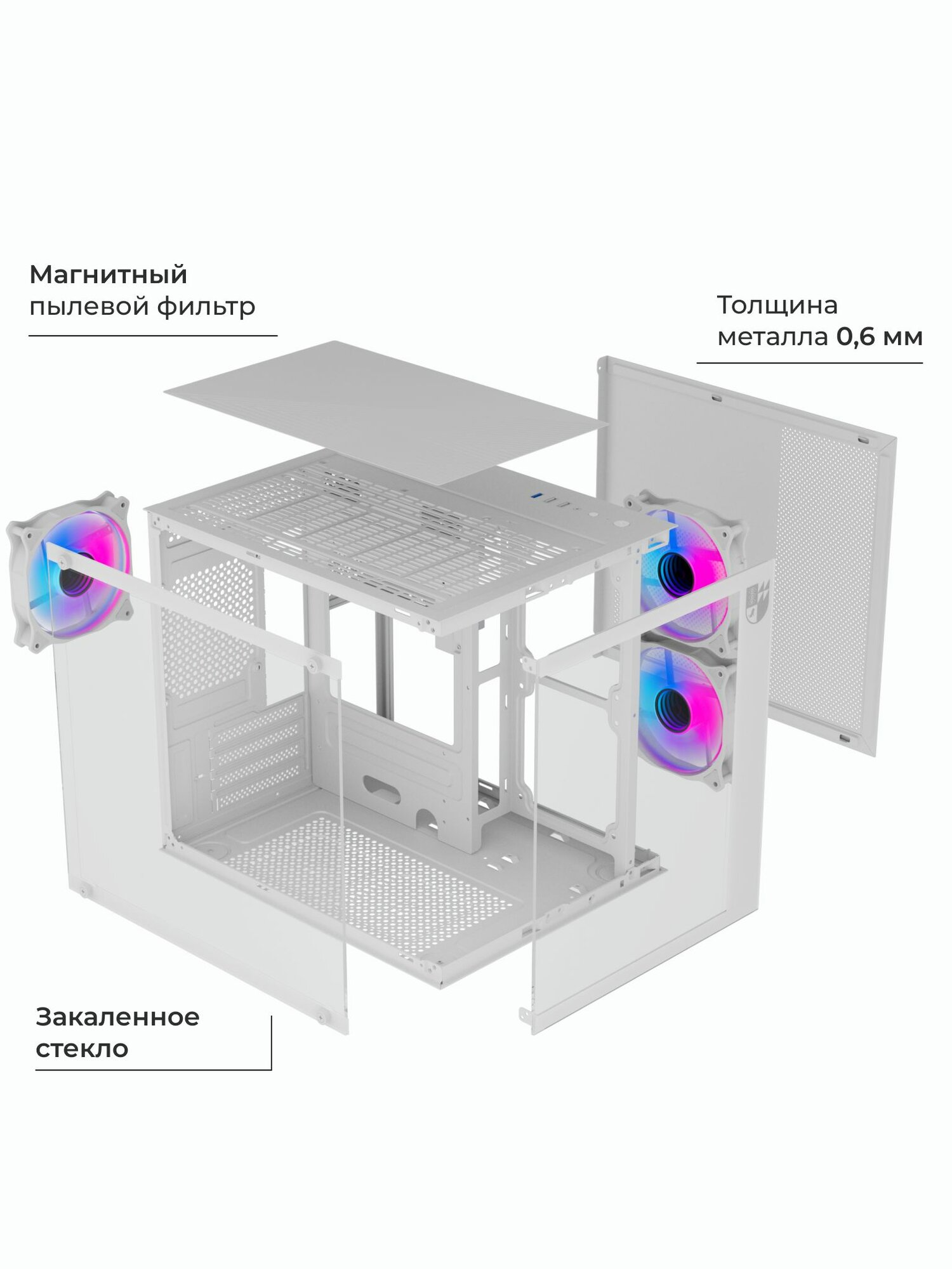 Корпус Invader Q3S кубик + 3 ARGB вентилятора + пылевой фильтр + закаленное стекло, Micro-ATX, Mini-ITX информация: