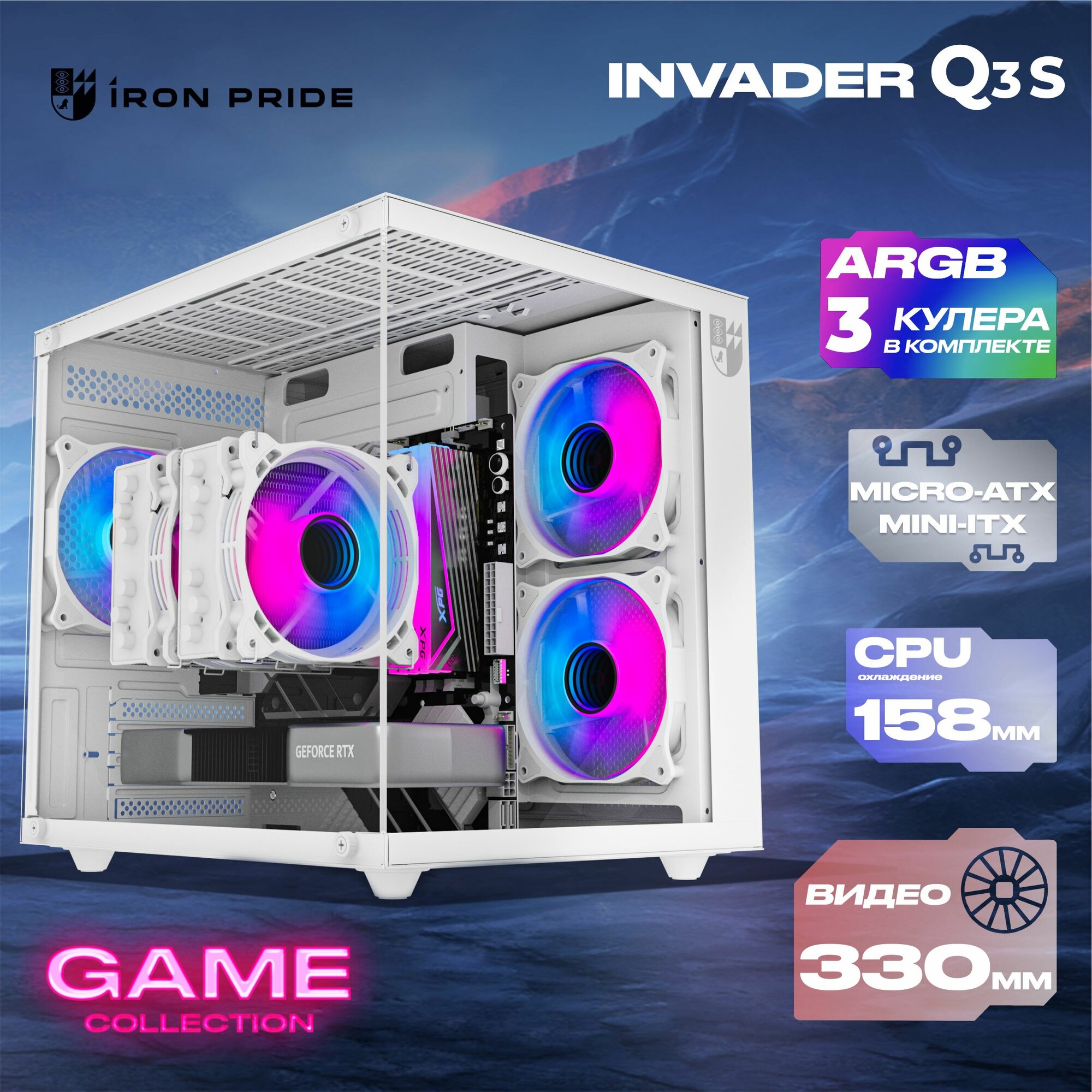 10 цен на Корпус Invader Q3S кубик + 3 ARGB вентилятора + пылевой фильтр + закаленное стекло, Micro-ATX, Mini-ITX