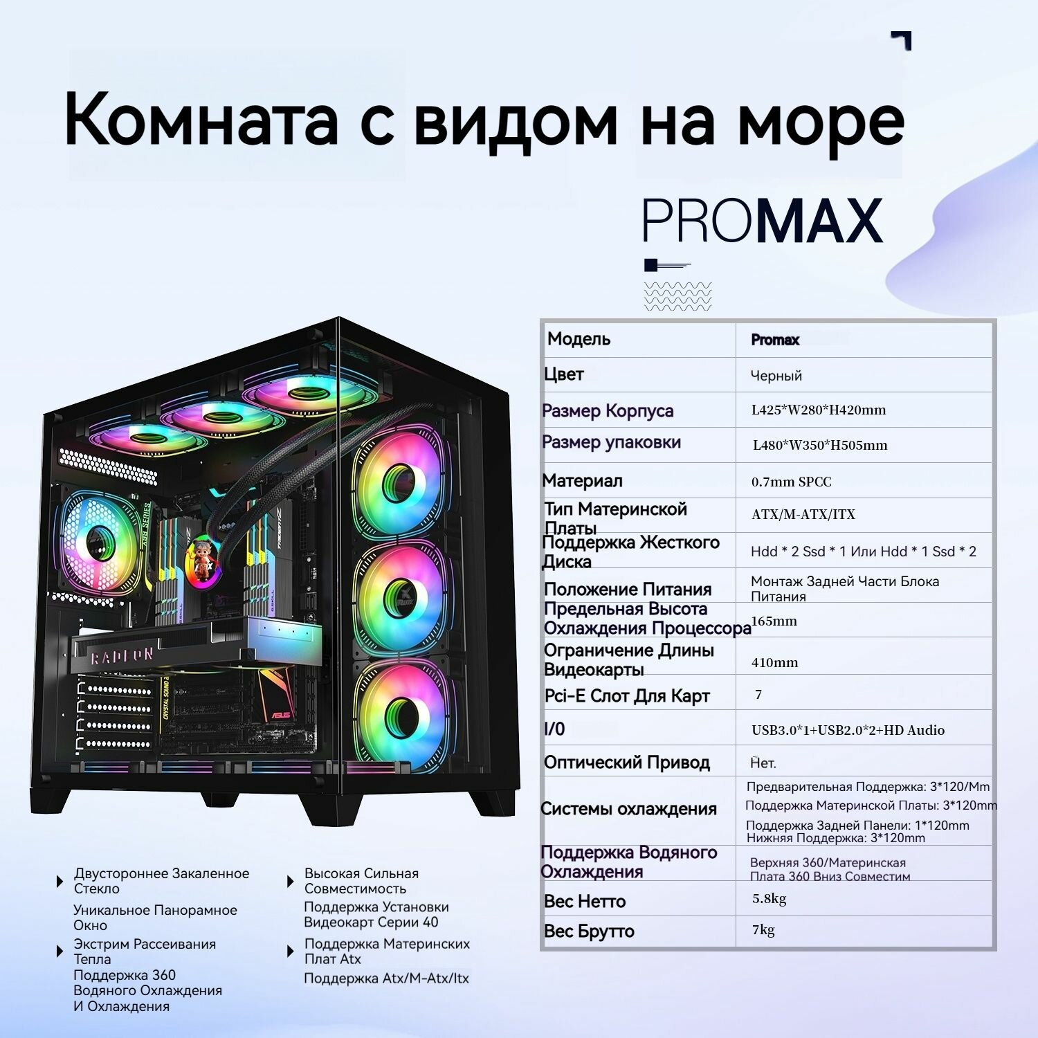 10 цен на Номер с видом на море pro max -корпус для пк-Закаленное стекло -подходит для ATX, Micro-ATX, Mini-ITX-черное