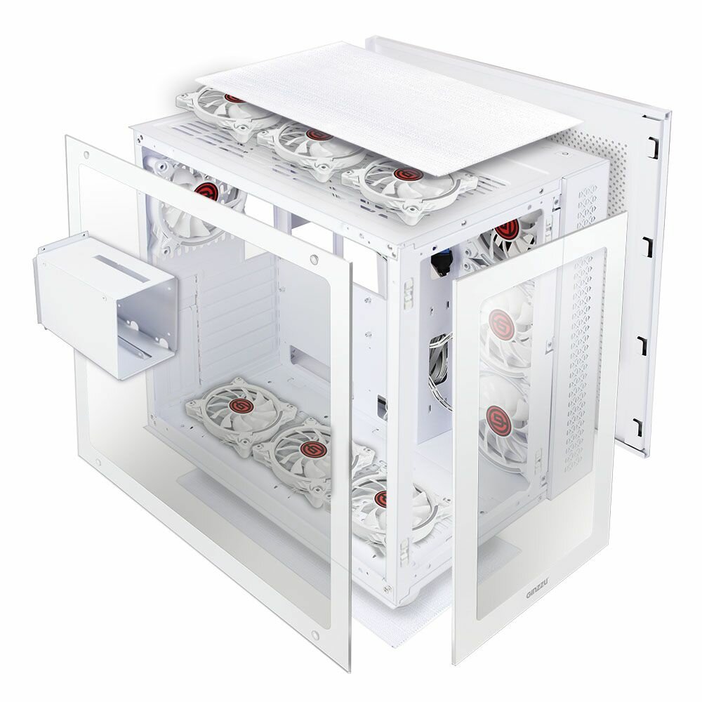 10 цен на Корпус Ginzzu V570 ATX кубик, закаленное стекло, RGB подсветка, система охлаждения CRC10 + 4 RGB вентилятора