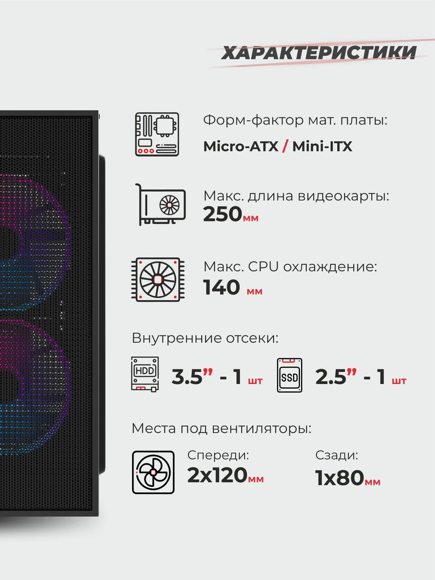 Корпус K1 + 2 ARGB вентилятора + закаленное стекло, Micro-ATX, Mini-ITX информация: