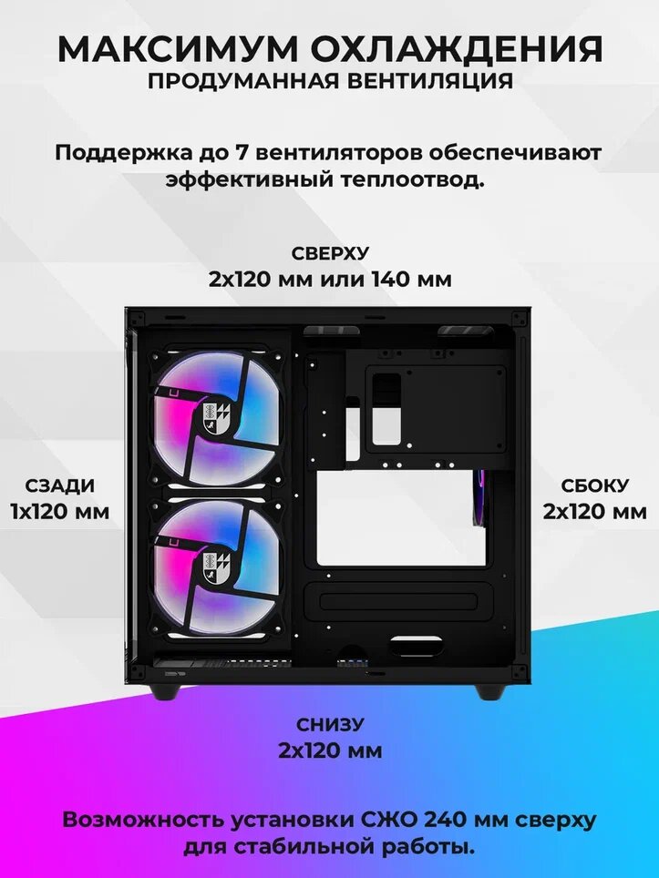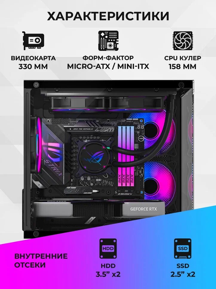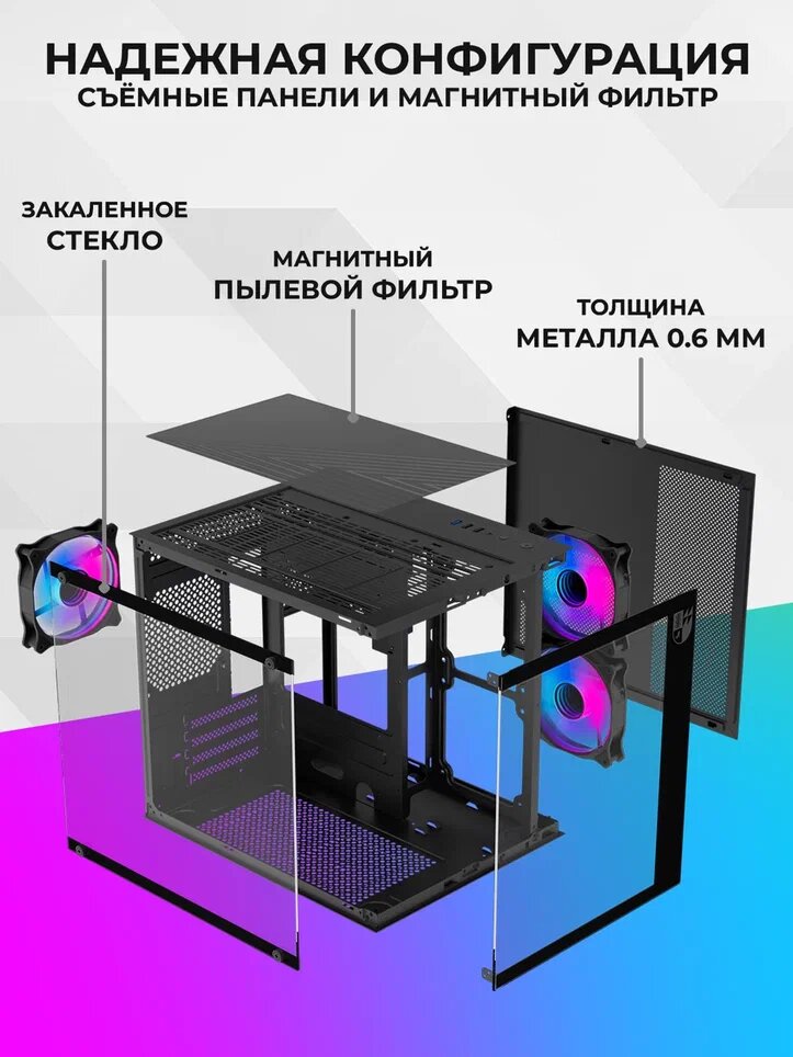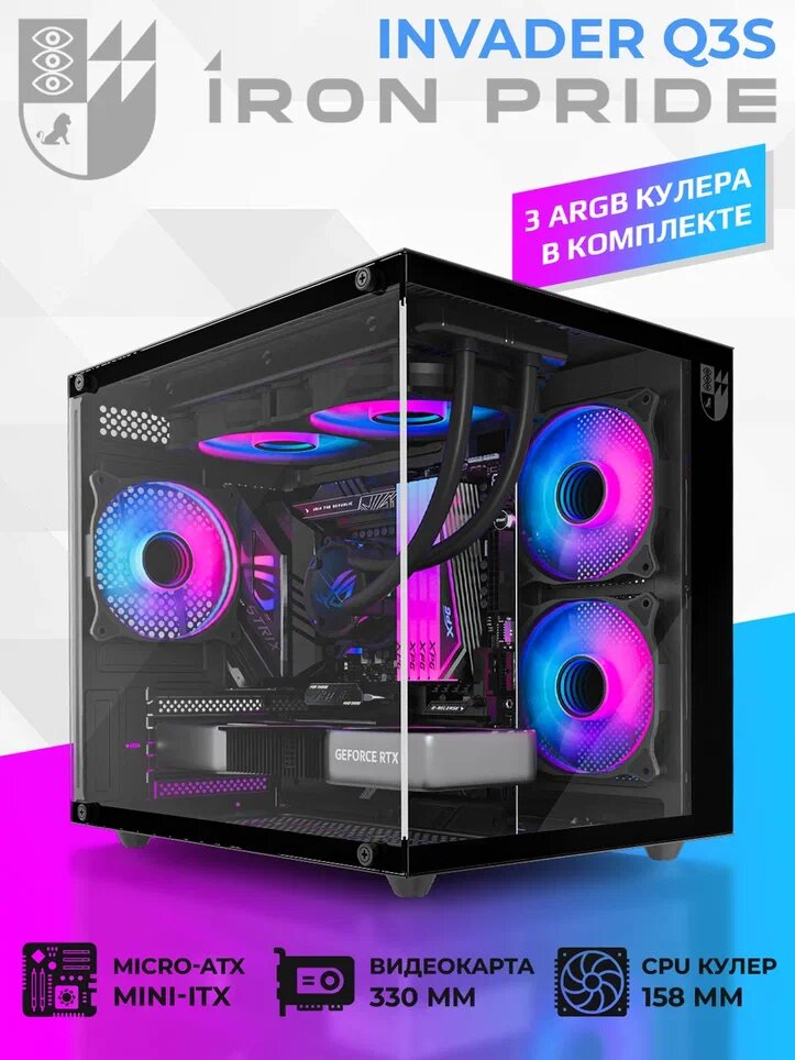 Отзывы на Корпус для ПК Iron Pride INVADER Q3S Black, 3 ARGB вентилятора без БП, закаленное стекло, Micro-ATX, Mini-ITX