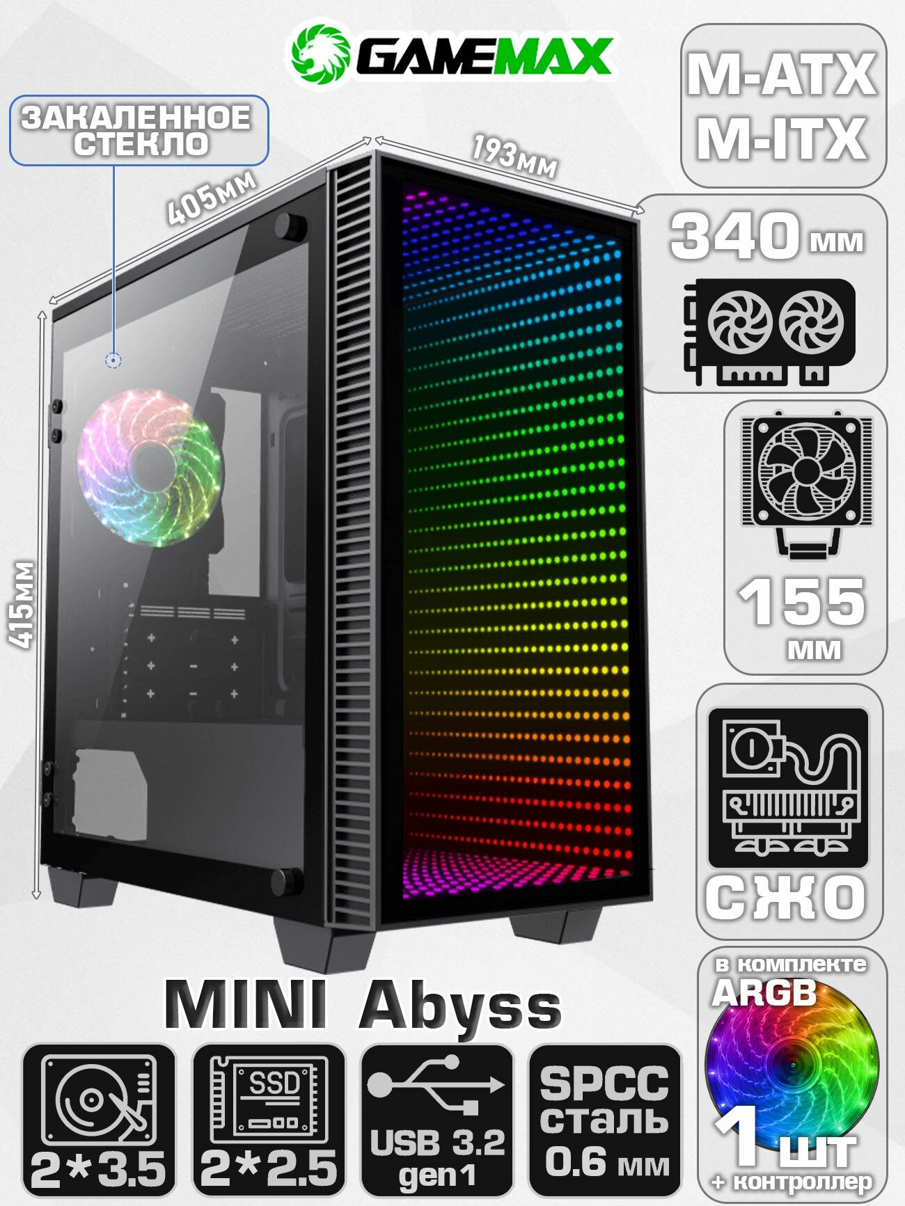 Корпус GameMax Abyss Mini H608 без БП (Черный Mini-Tower CPU 155мм VGA 340мм) информация: