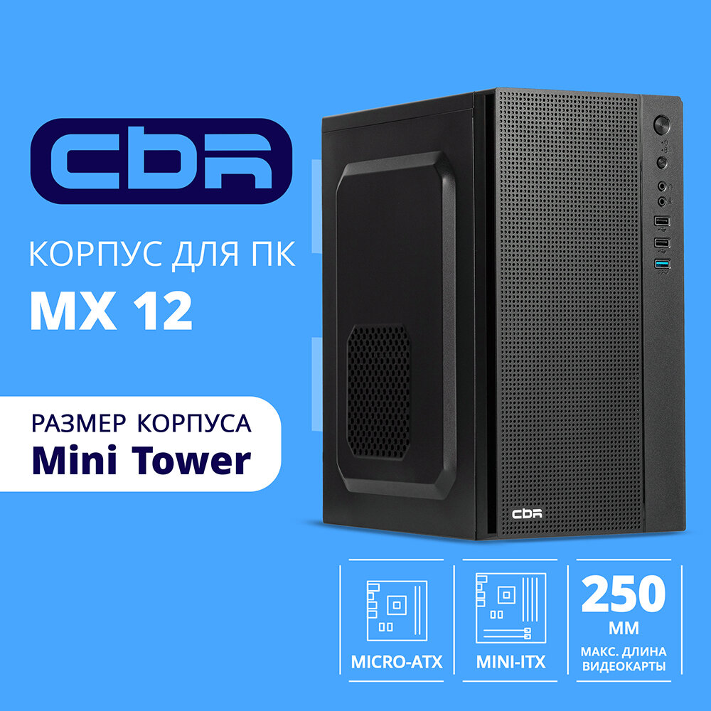 Cbr Корпус Корпус mATX Minitower MX12, c БП PSU-ATX500-08EC 500W 80mm , 1 USB 3.0, 2 USB 2.0, HD Audio+Mic, Black PCC-MATX-MX12-500W2 информация: