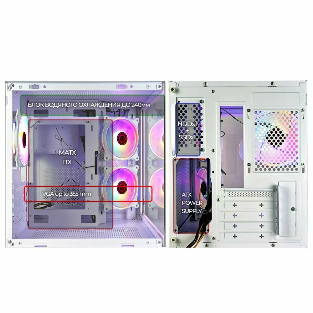 Корпус для ПК игровой аквариум без блока питания microATX белый