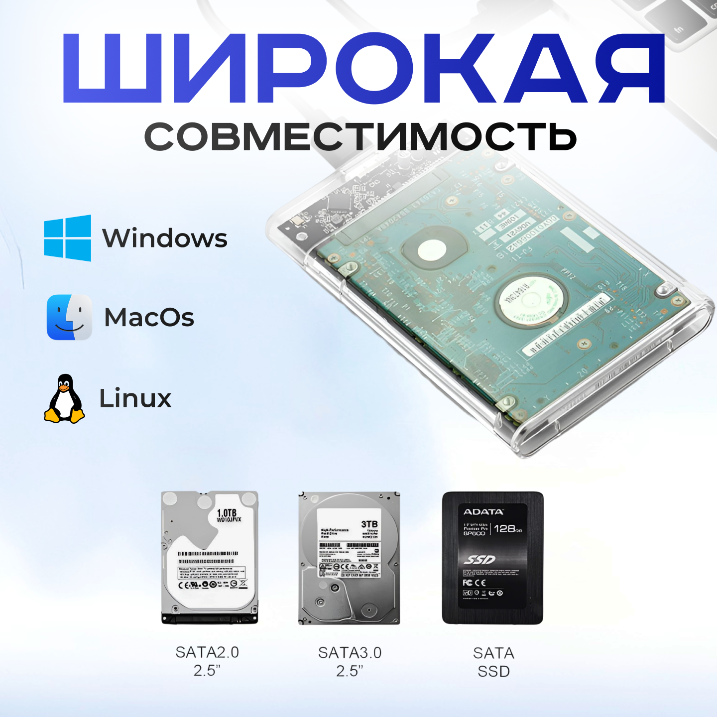 Бокс для внешнего жесткого диска 2.5" SATA HDD/SSD, корпус для внешнего жесткого диска информация: