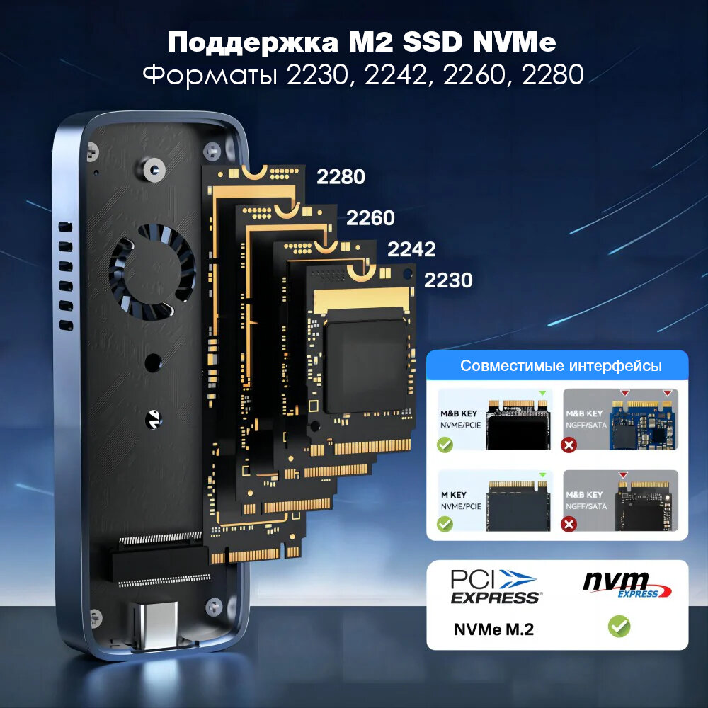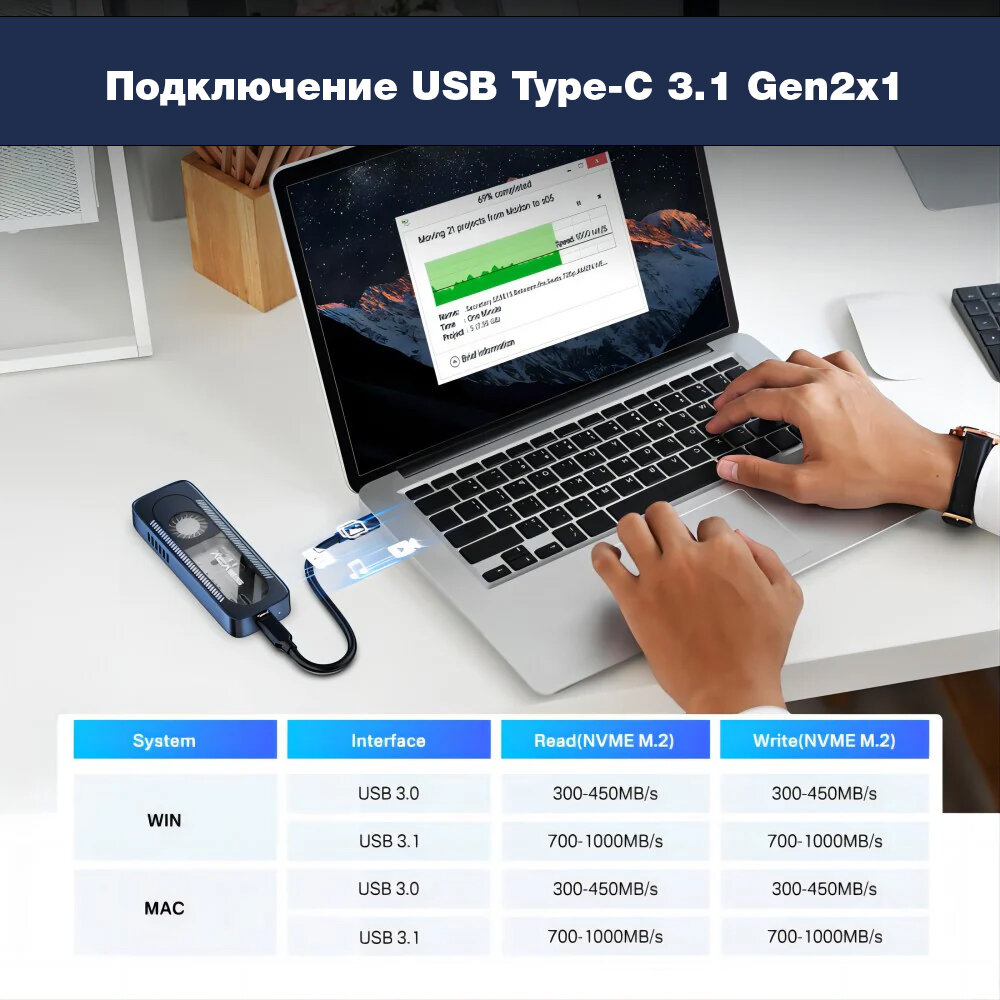 Переходник (внешний бокс) ACASIS M.2 NVMe SSD Air Box (USB Type-C 3.1 Gen 2 10 Gbps) с охлаждением (кулером) информация:
