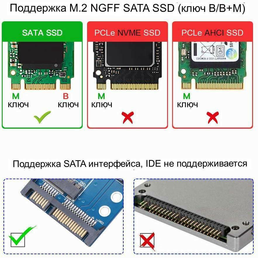 Адаптер M.2 NGFF (B+M Key M.2) в SSD с SATA3 разъемом информация: