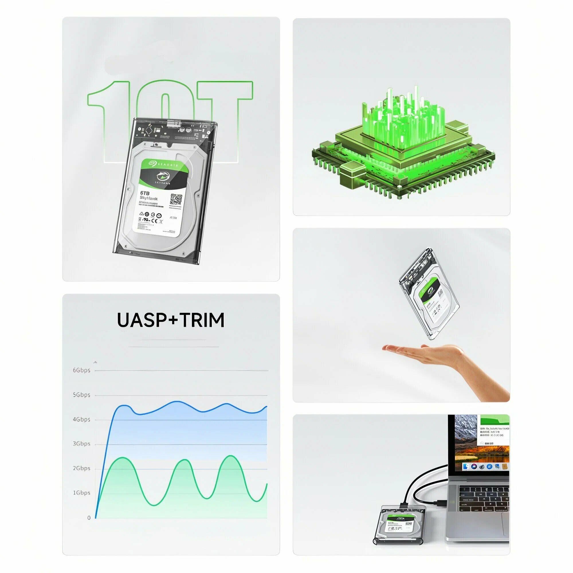 10 цен на Корпус для жесткого диска TECH U25TY3.1-AC, 2.5", прозрачный, с MicroUSB, USB3.0, SATA