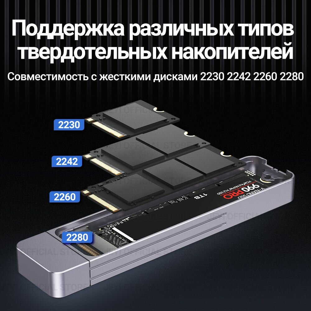 Твердотельный накопитель JEYI Direct M.2 NVMe с разъемом USB-A, алюминиевый корпус для твердотельных накопителей размеров 2230/42/60/80 информация: