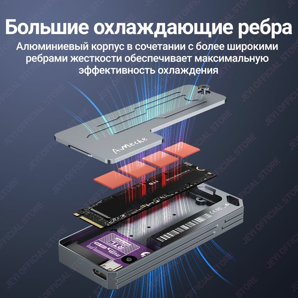 Корпус жесткого диска JEYI M.2 2280 NVME SSD, поддержка USB 3.2 10 Гбит/с, чип RTL9210 информация: