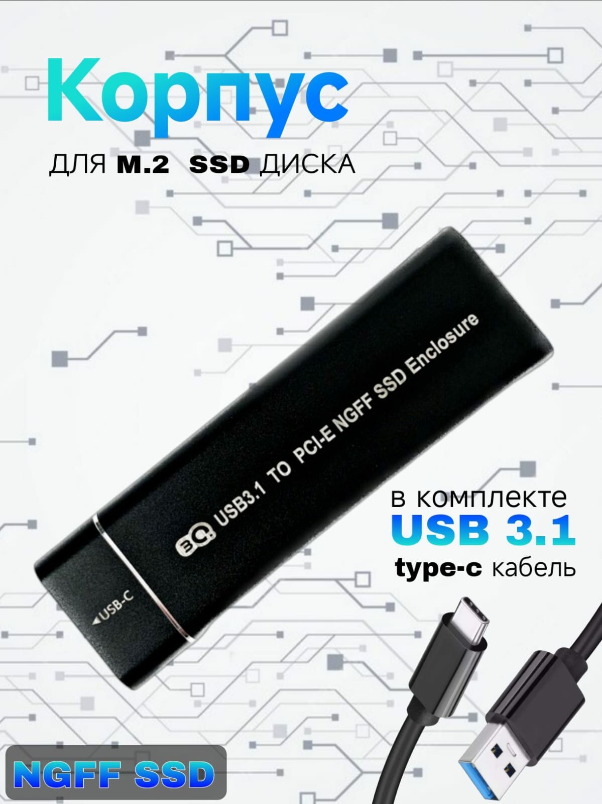 Внешний корпус для SSD M.2 NGFF 3Q USB 3.1 информация: