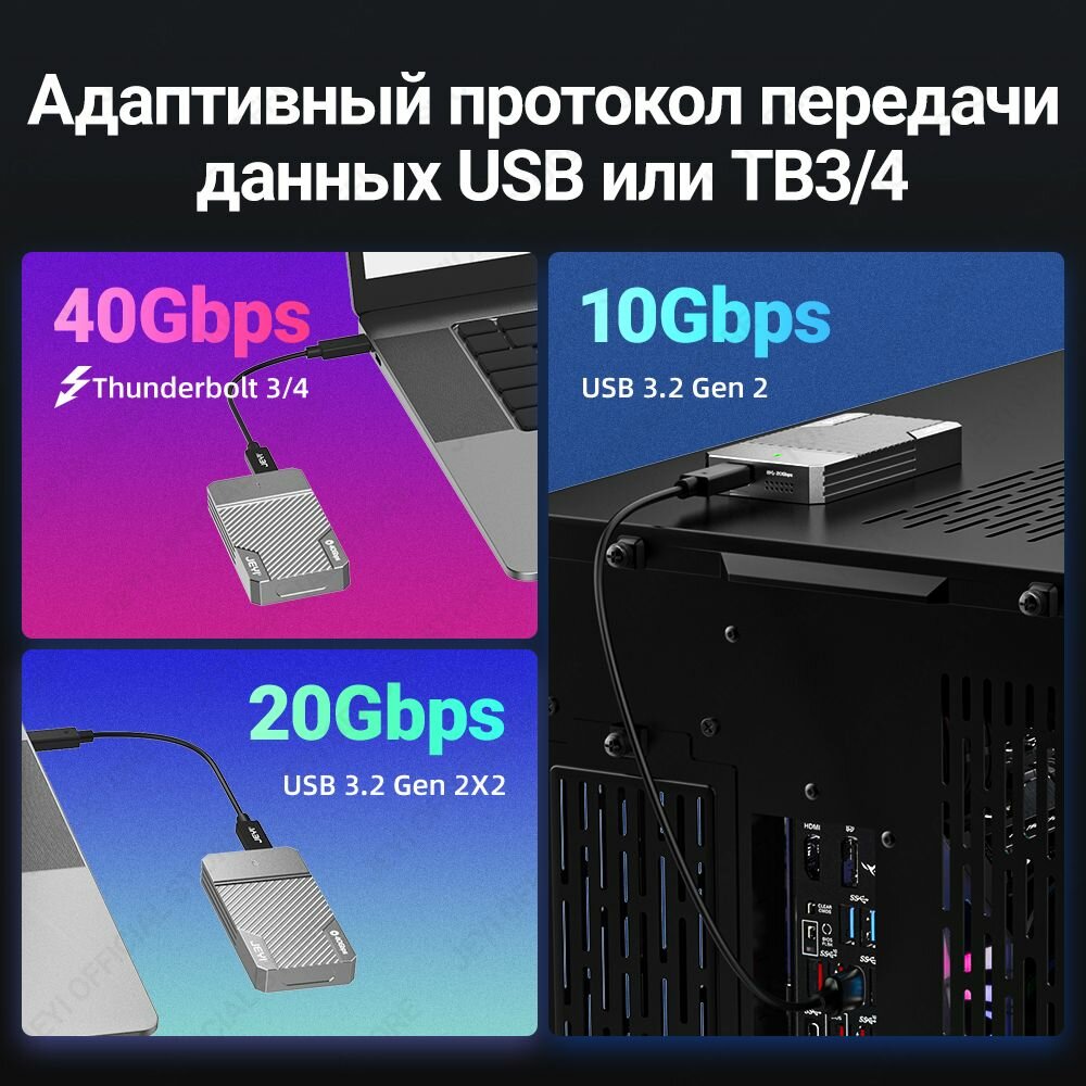 JEYI Корпус для SSD M.2 NVMe с USB 4.0 40 Гбит/с, полностью из алюминия, M.2 к Type-c 4.0, совместим с Thunderbolt 4/3 и USB 3.2/3.1/3 информация:
