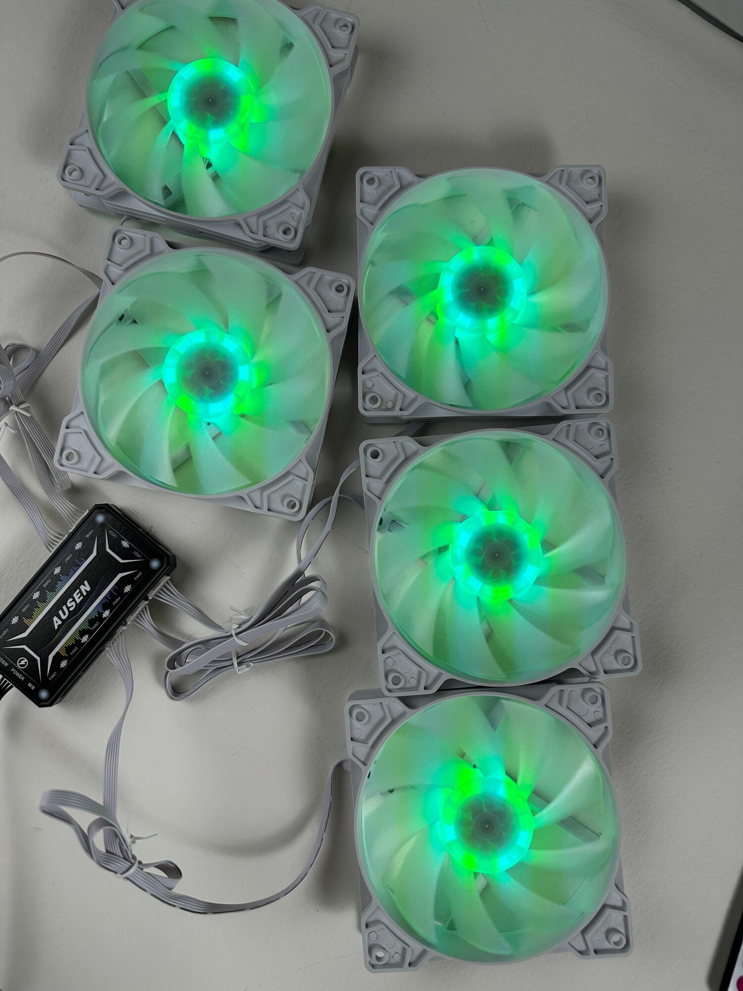 Отзывы на Вентиляторы белые RGB для корпуса 120мм подсветкой , набор 5 кулеров+крепеж+контроллер с пультом