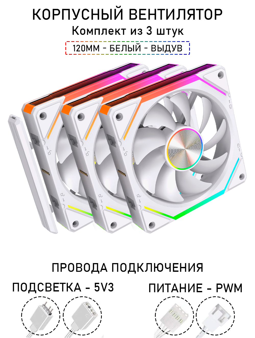 10 цен на Модульный вентилятор - 5RS Inline - 120мм, A-RGB, PWM+5v3, Комплект из 3 штук, белый, на выдув из корпуса