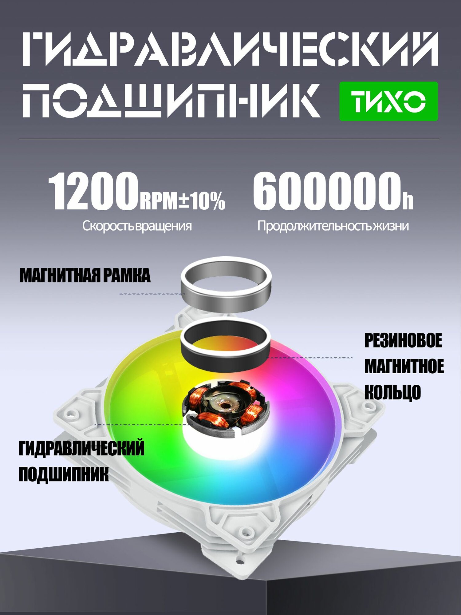 Вентилятор для корпуса компьютера *5 шт, RGB вентилятор для корпуса 120х120мм информация: