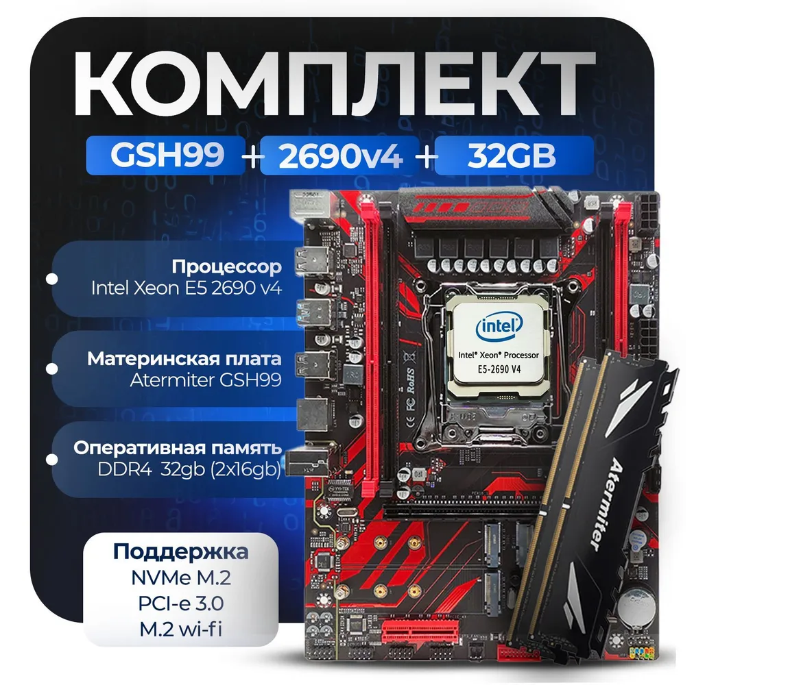 10 цен на Комплект: Xeon E5-2690v.4 +DDR4 32GB 3200Mhz (2x16GB) ECC+ Atermiter X99 LG2011