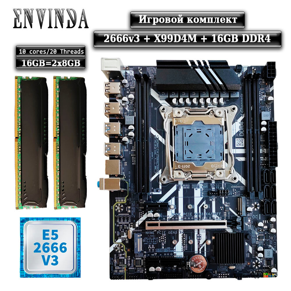 10 цен на Комплект материнская плата Envinda X99 + Xeon 2666V3 + 16GB DDR4 ECC 2x8GB Black
