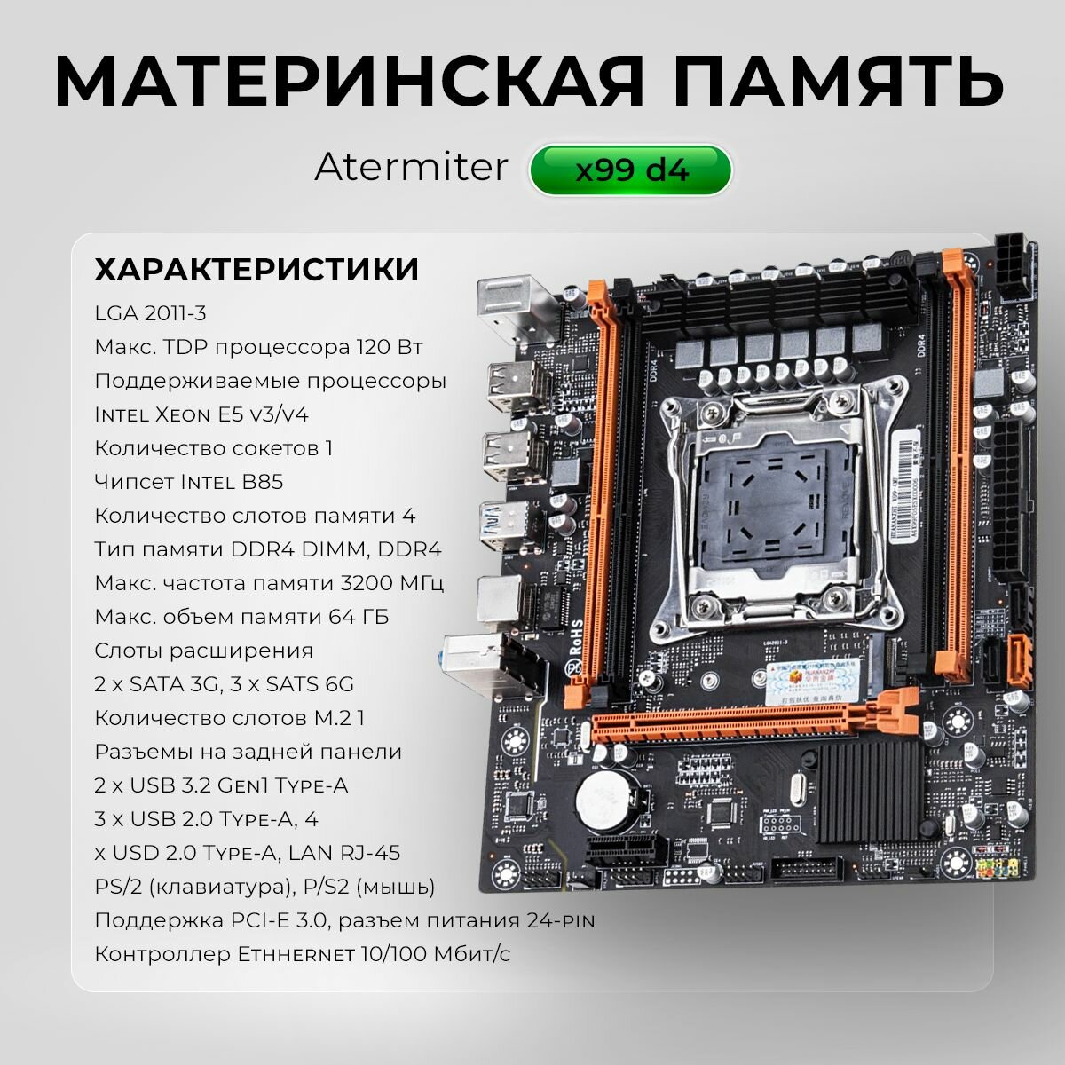 Комплект для Пк Материнская плата Atermiter x99 d4 с процессором Xeon E5 2640v4 и оперативной памятью на 8gb(1x8gb) DDR4 информация: