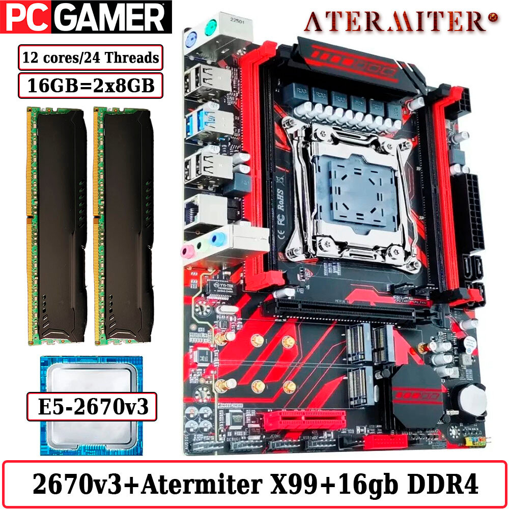 10 цен на Комплект материнская плата Atermiter X99 D4 + Xeon 2670V3 + 16GB DDR4 ECC REG 2x8GB Black