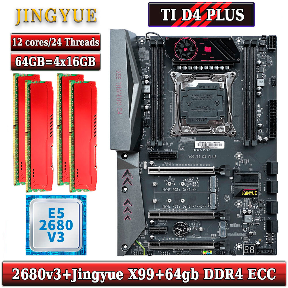 10 цен на Комплект материнская плата Jingyue X99 Titanium D4 + Xeon 2680V3 + 64GB DDR4 ECC 4x16GB Red