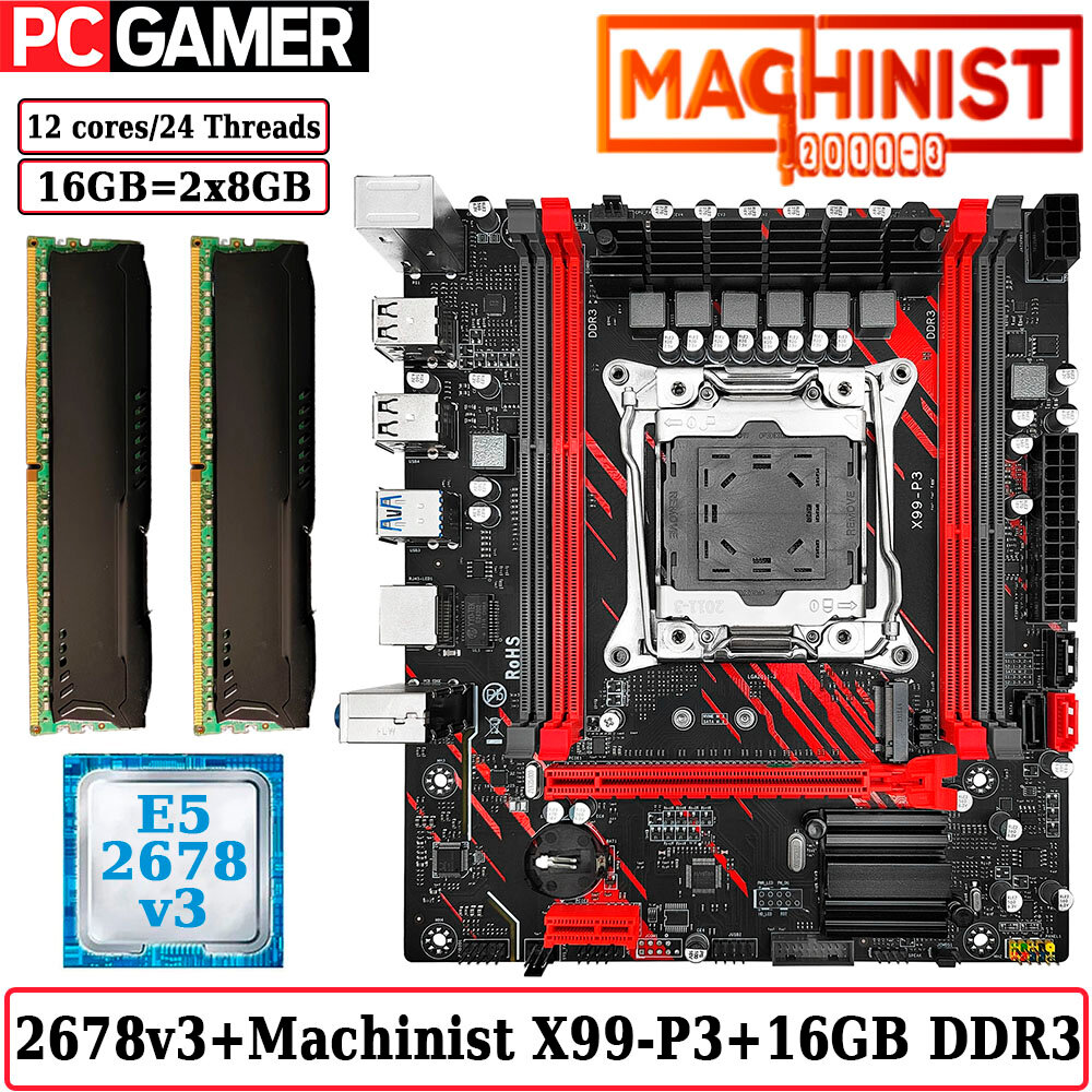 10 цен на Комплект материнская плата Machinist X99-P3 + Xeon 2678V3 + 16GB DDR3 ECC 2x8GB Black