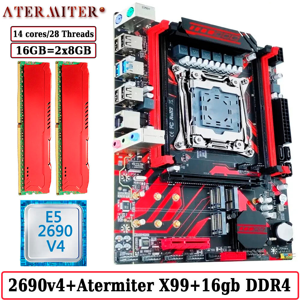 10 цен на Комплект материнская плата Atermiter X99 D4 + Xeon 2690V4 + 16GB DDR4 ECC 2x8GB Red