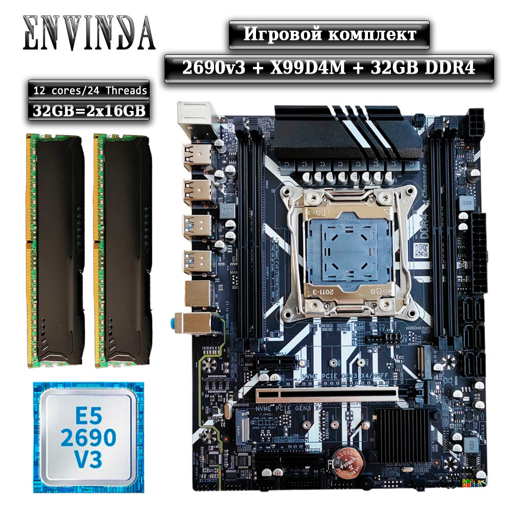 10 цен на Комплект материнская плата Envinda X99 + Xeon 2690V3 + 32GB DDR4 ECC 2x16GB Black