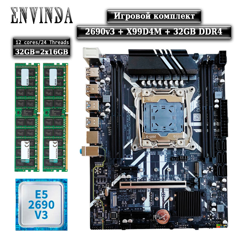 10 цен на Комплект материнская плата Envinda X99 + Xeon 2690V3 + 32GB DDR4 ECC