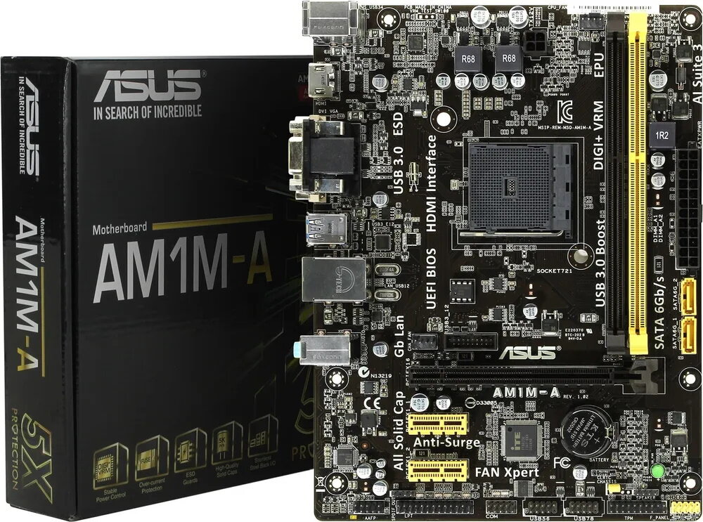 10 цен на Материнская плата ASUS AM1M-A Socket AM1, 2*DDR3, PCI-E, SATA, ALC887 8ch, GLAN, USB3.0, D-SUB, mATX