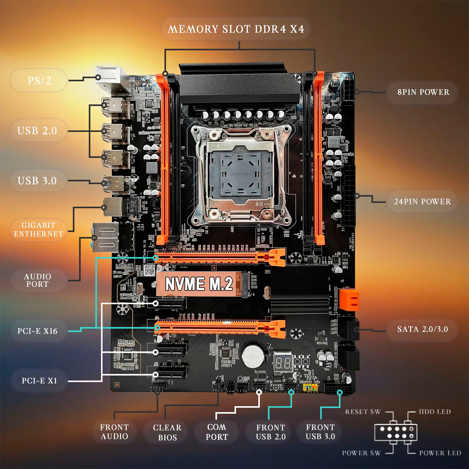Комплект материнская плата Amentmen X99-B4 + Xeon 2690V3 + 32GB DDR4 ECC REG 2x16GB Blue
