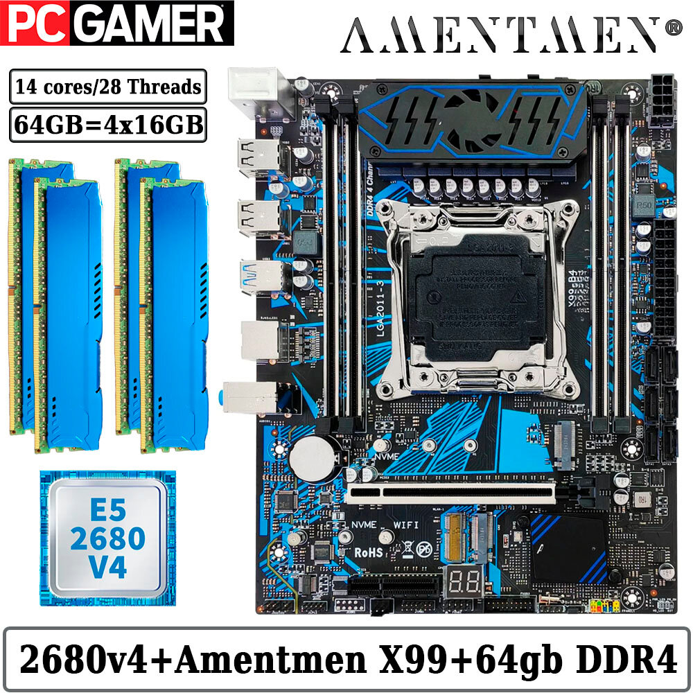 10 цен на Комплект материнская плата Amentmen X99-B4 + Xeon 2680V4 + 64GB DDR4 ECC REG 4x16GB Blue