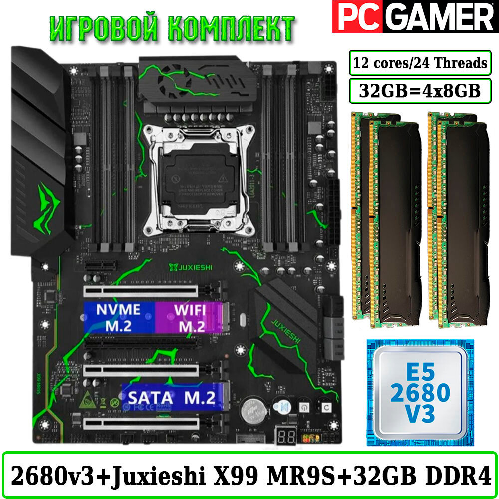 10 цен на Комплект материнская плата JUXIESHI X99-MR9S + Xeon 2680V3 + 32GB DDR4 ECC 4x8GB Black