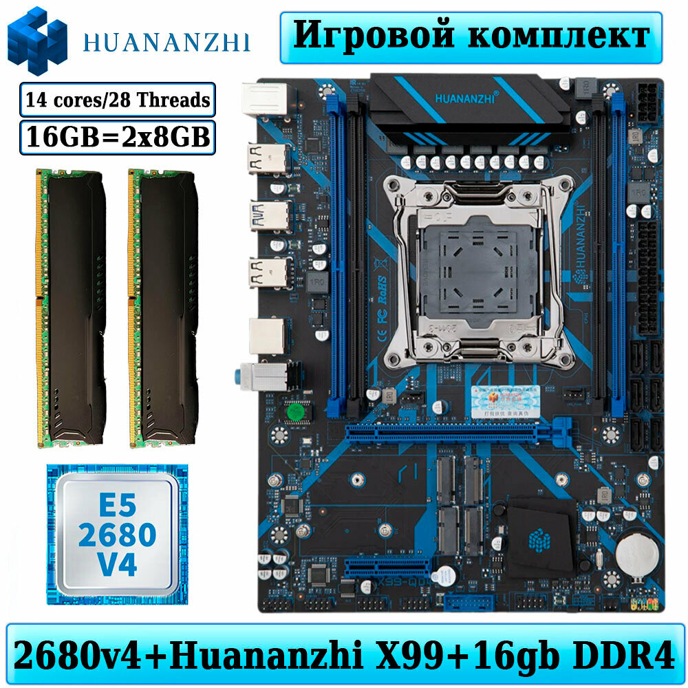 Комплект материнская плата Huananzhi X99-QD4 + Xeon 2680V4 + 16GB DDR4 ECC REG 2x8GB Blue 13 600 ₽