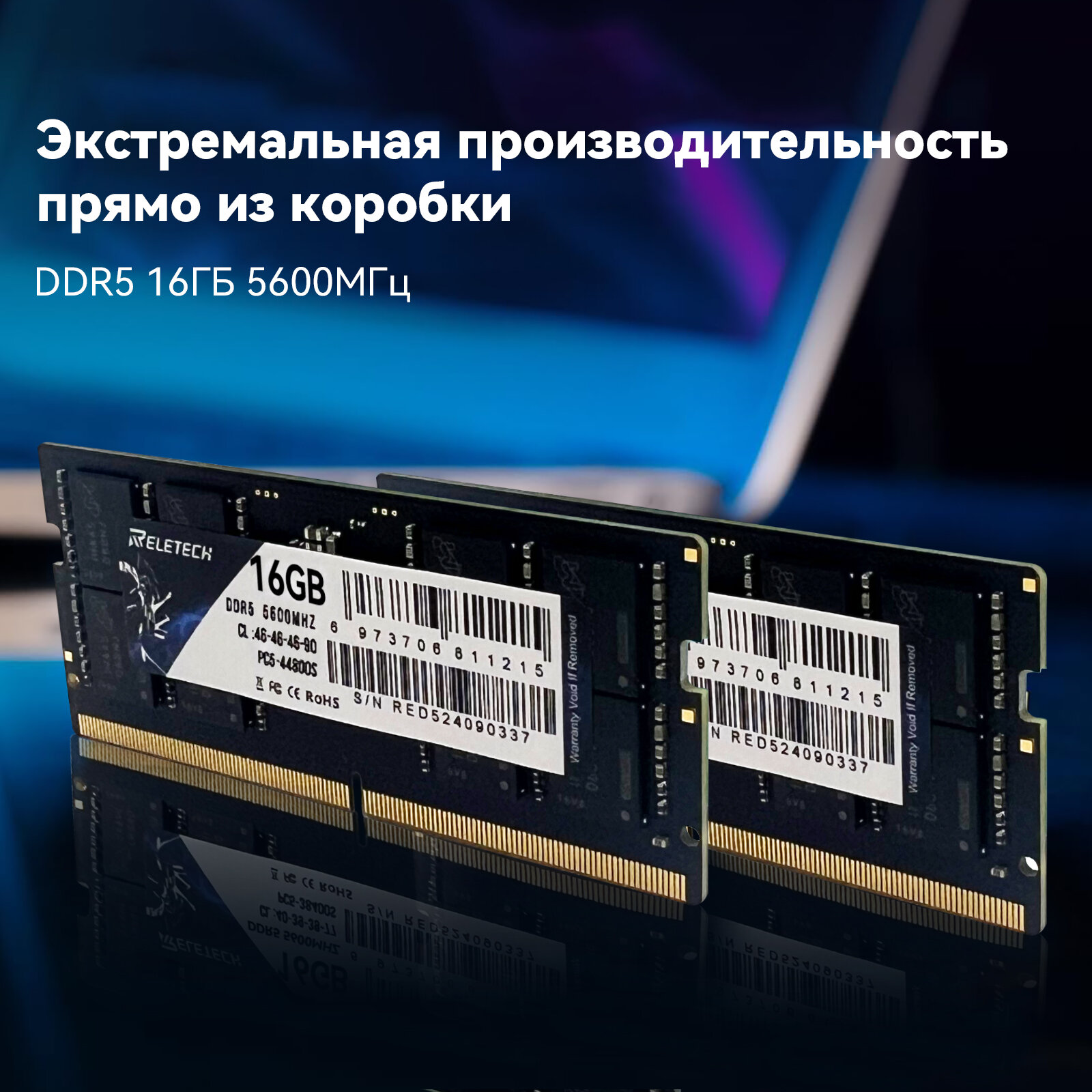 Оперативная память DDR5 16 ГБ 5600MHz CL46 PC5-44800S 1.1V SO-DIMM Для ноутбука, Высокопроизводительная оперативная память Reletech информация: