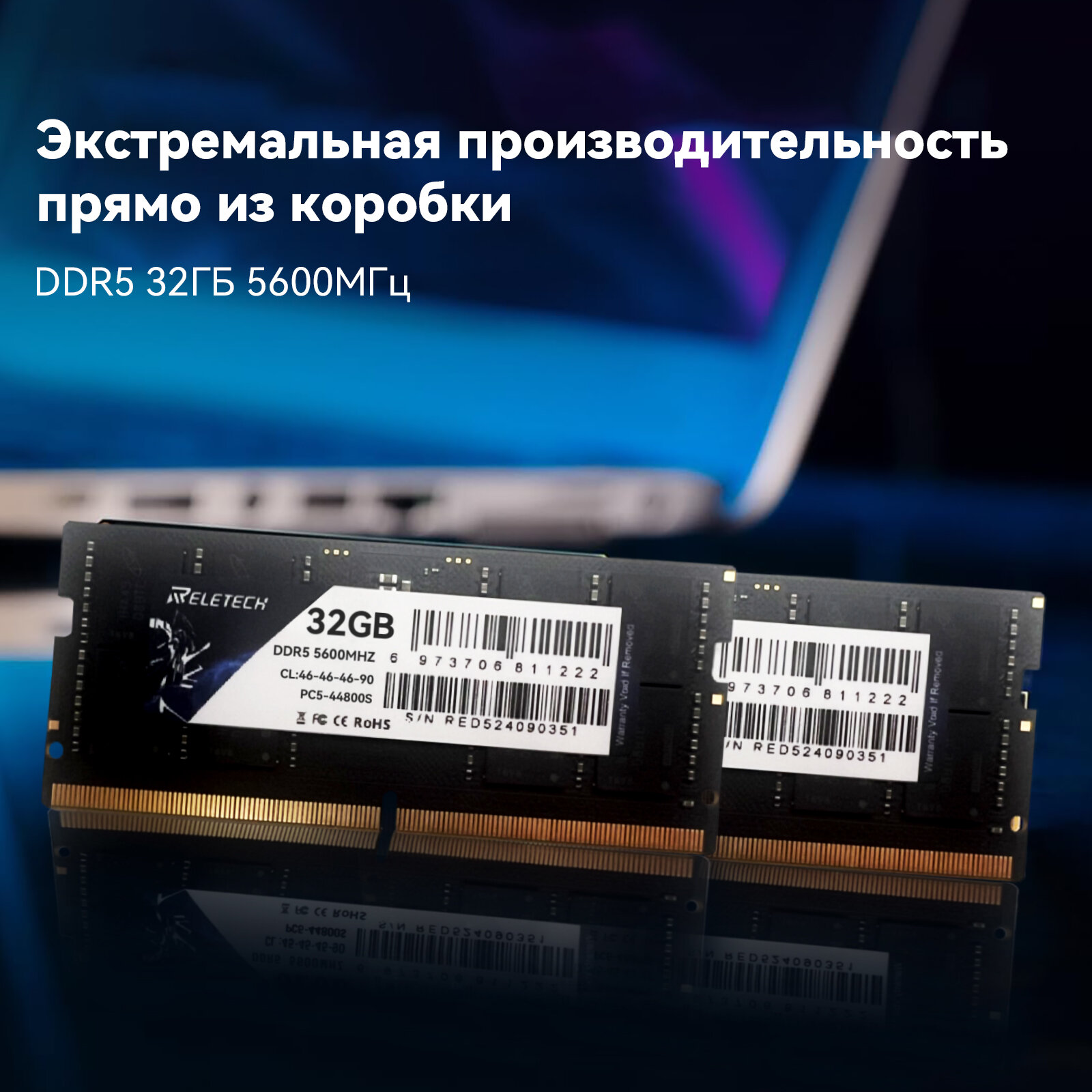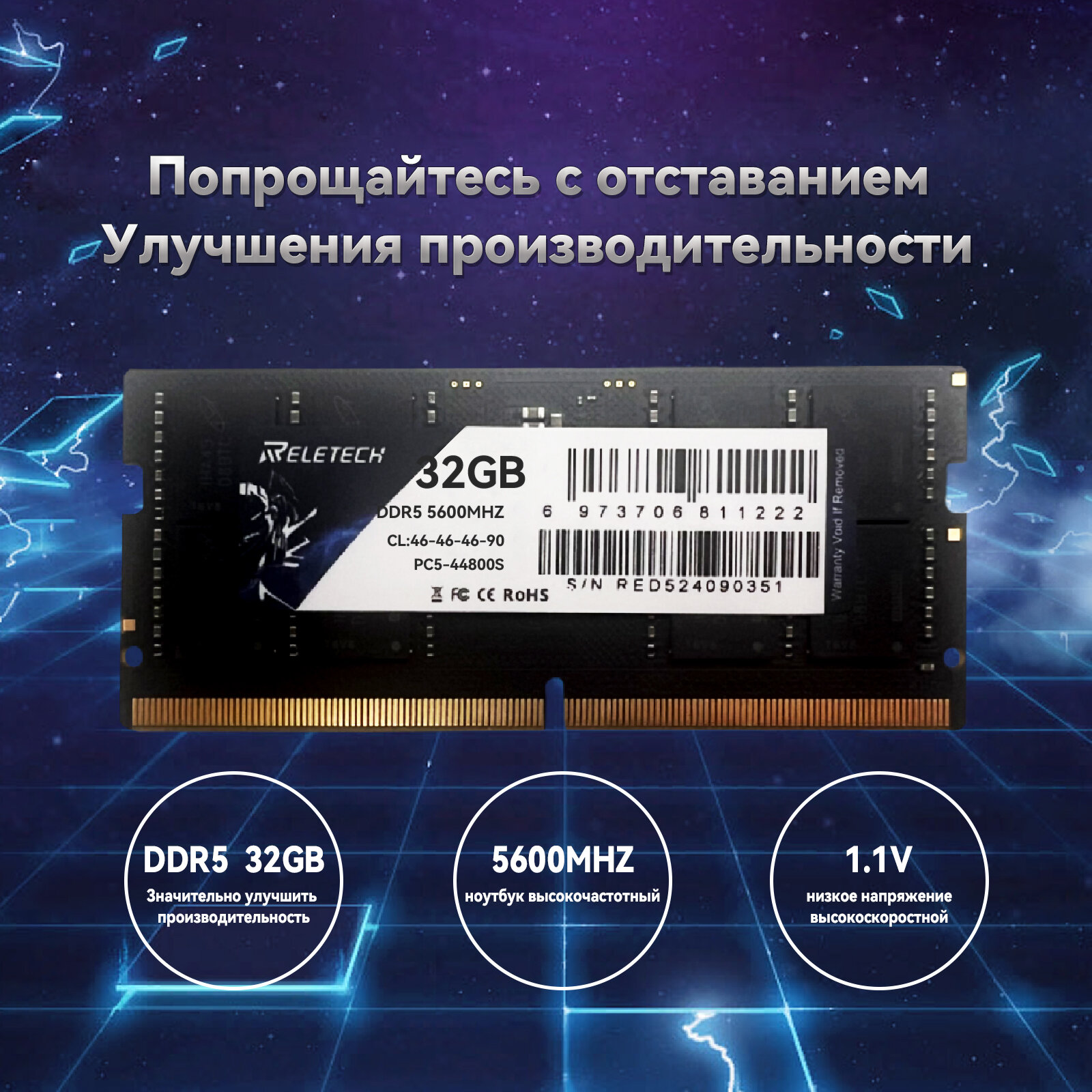 Оперативная память DDR5 32 ГБ 5600MHz CL46 PC5-44800S 1.1V SO-DIMM Для ноутбука, Высокопроизводительная оперативная память Reletech информация: