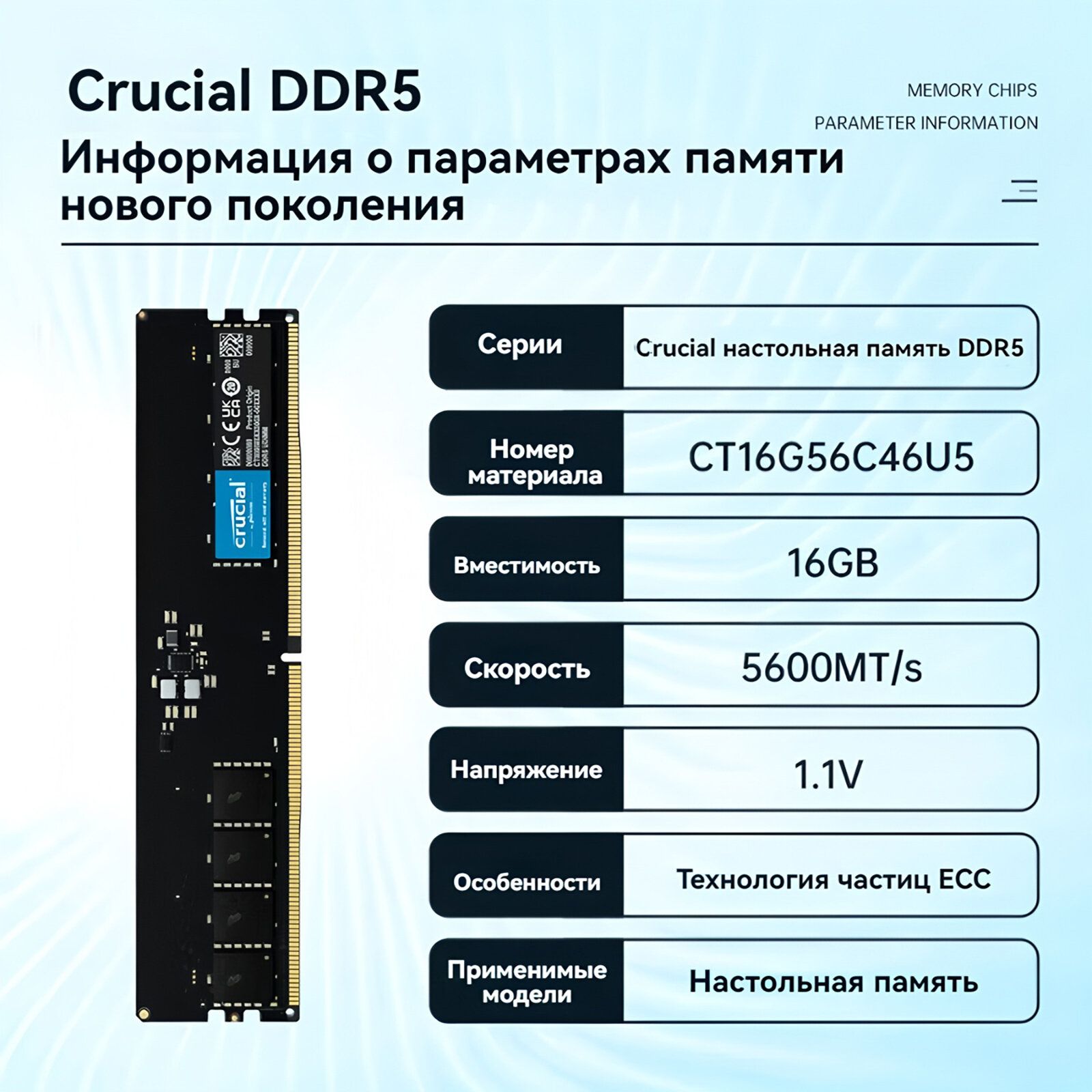 Crucial Модуль памяти DDR5, 1X16ГБ, 5600МГц Настольный компьютер информация: