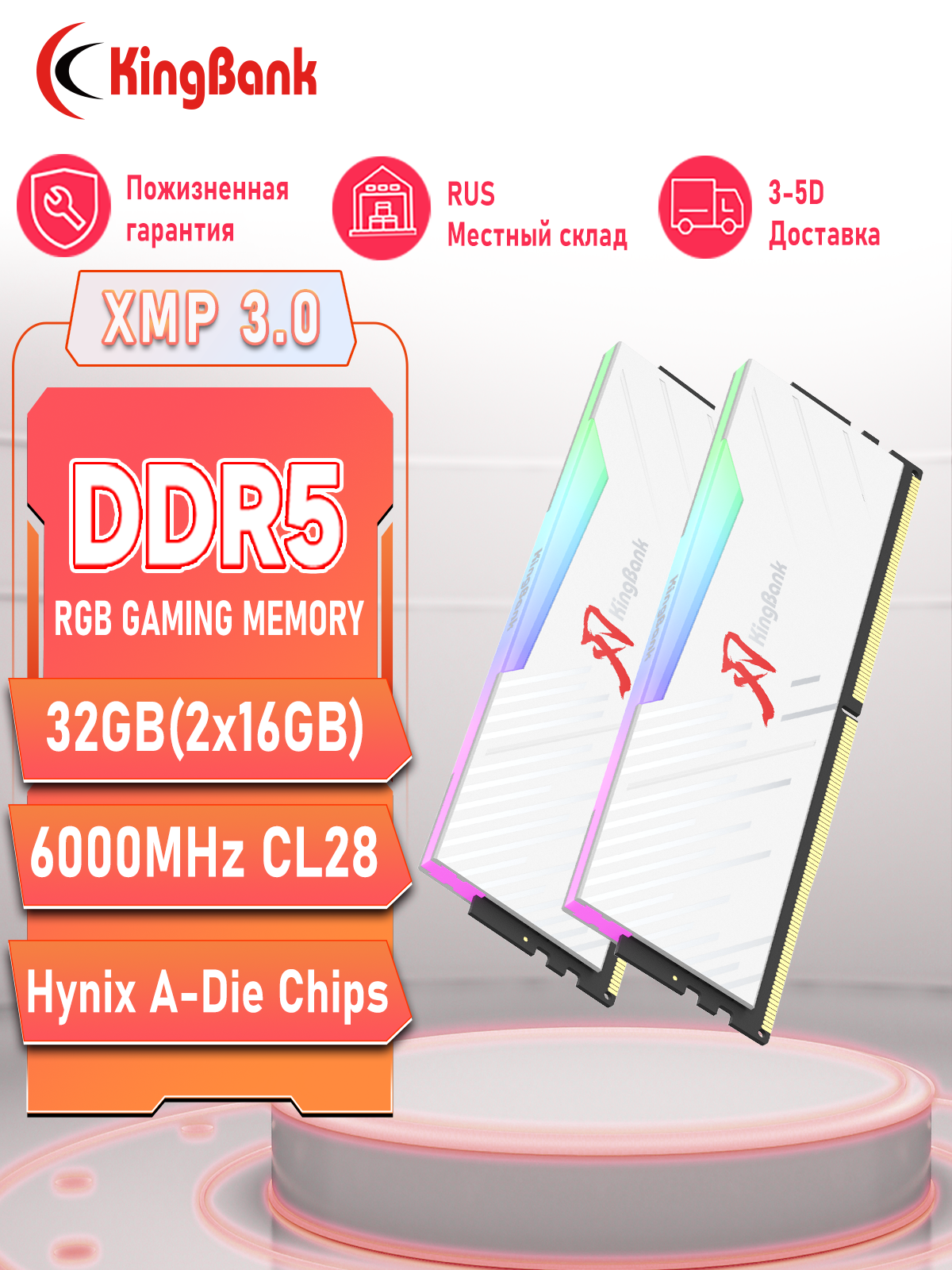 10 цен на Kingbank Модуль памяти DDR5 6000MHz 2*16GB 32GB UDIMM Heatsink RGB (Hynix A-die c28)