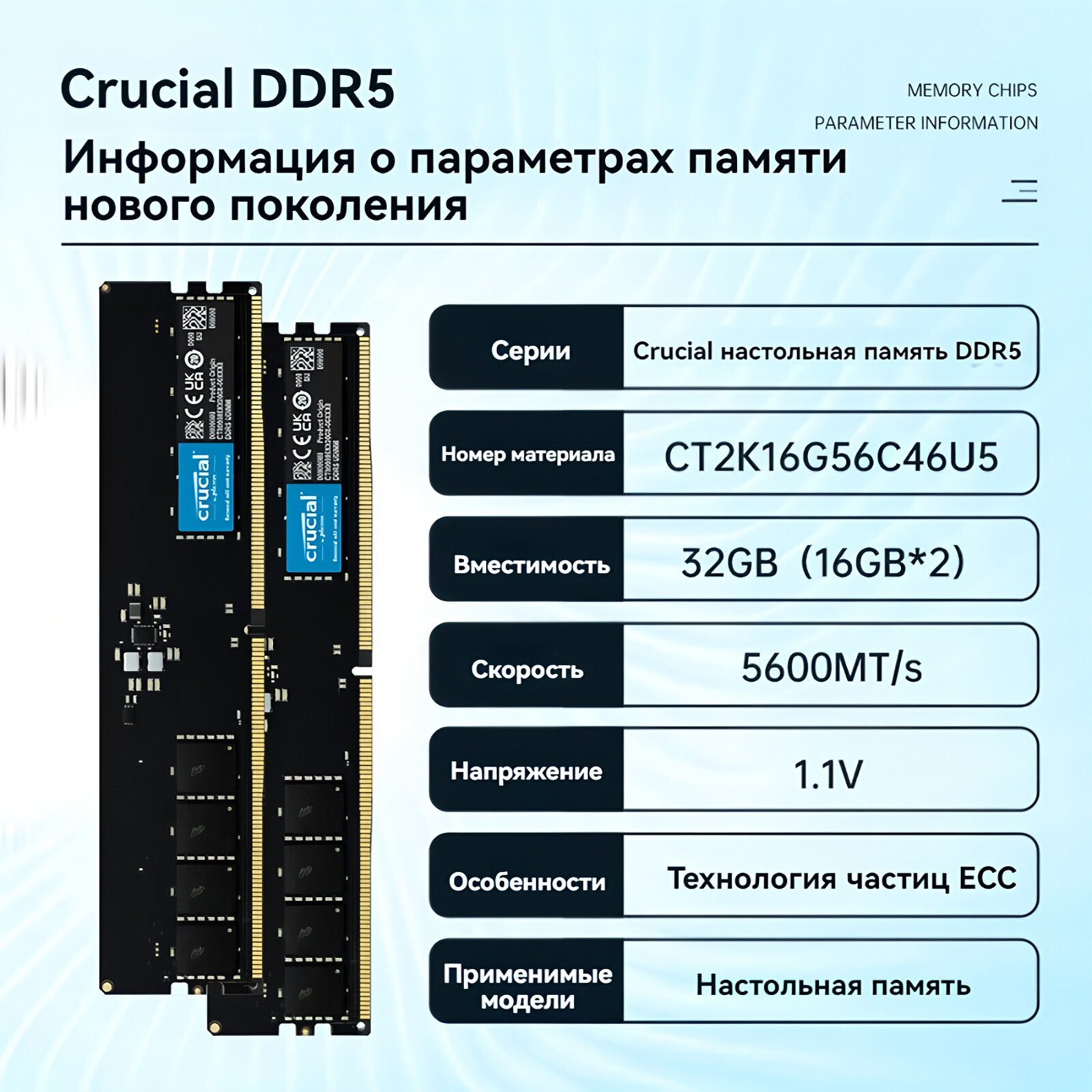 Crucial Модуль памяти DDR5 5600mhz 2X16GB 32GB UDIMM( CL:46) информация: