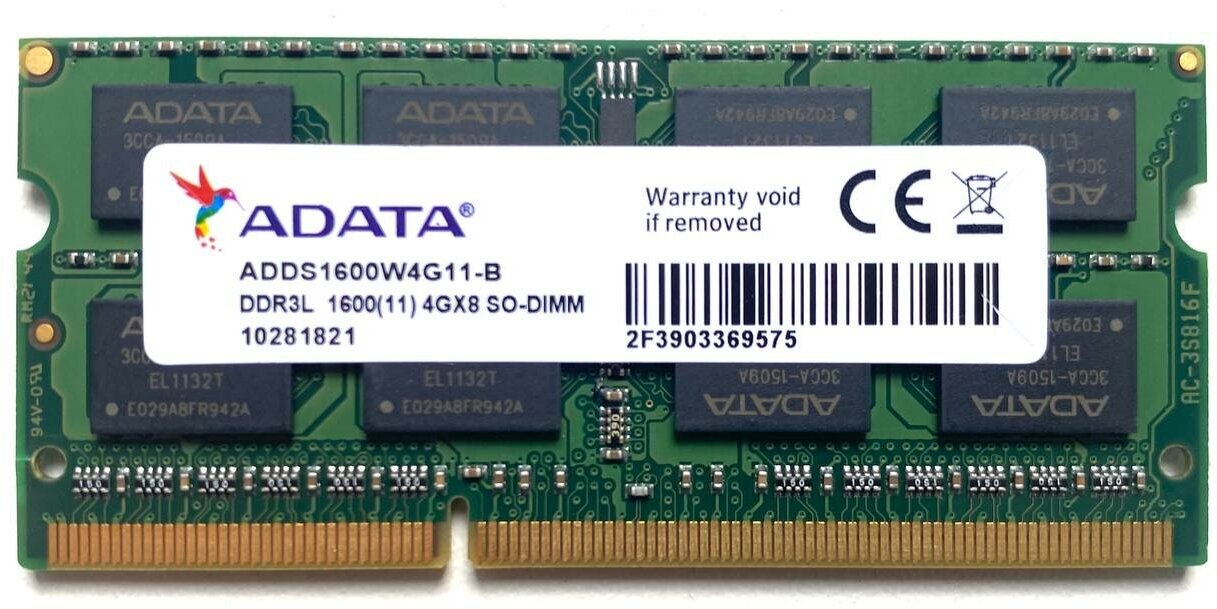 Отзывы на Оперативная память ADATA DDR3 4GB 1600 Мгц PC3L 1.3v 2Rx8 SODIMM для ноутбука