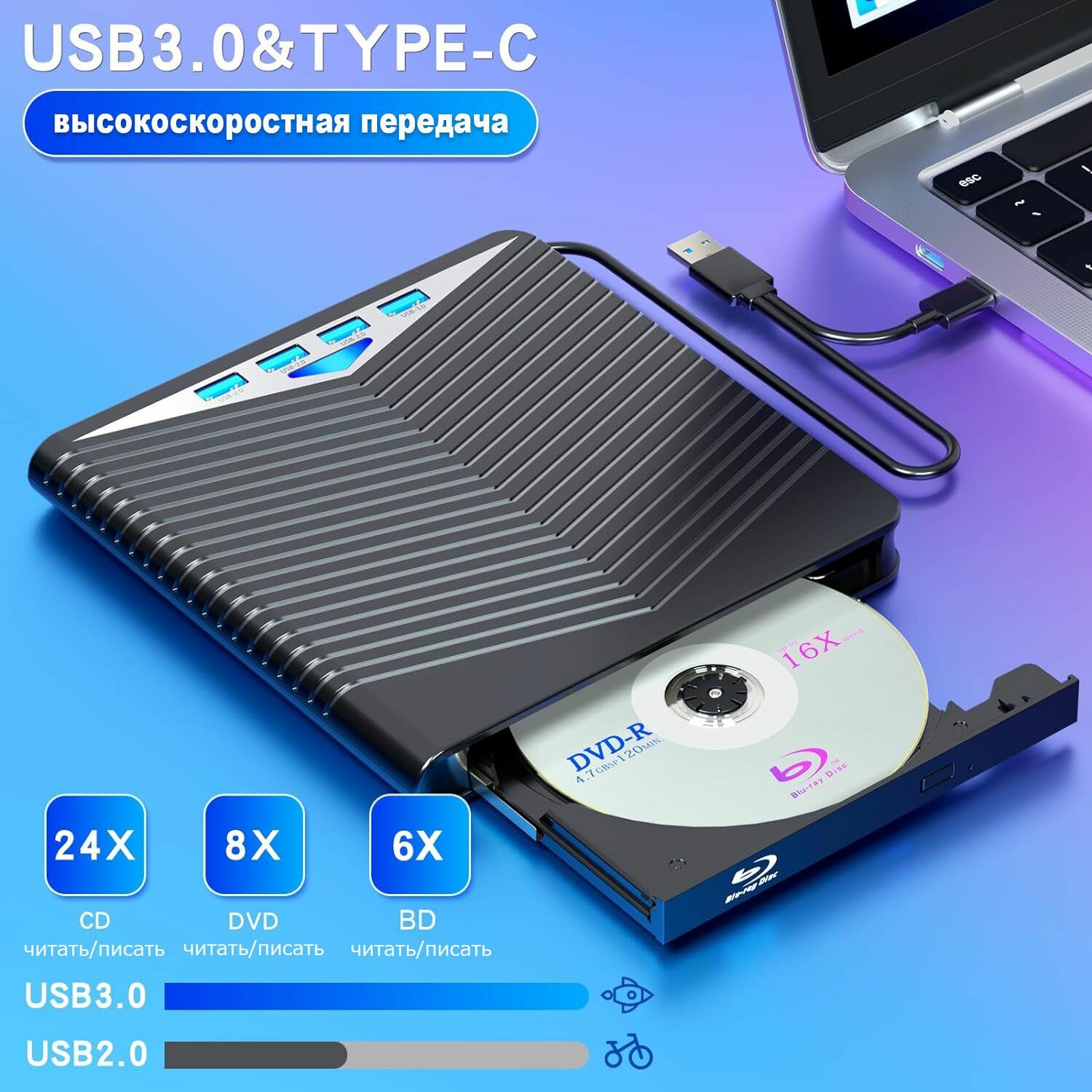 Внешний привод 7-в-1/оптический привод/CD/DVD, тонкий портативный USB 3.0 плеер, совместимый с портативными настольными компьютерами информация: