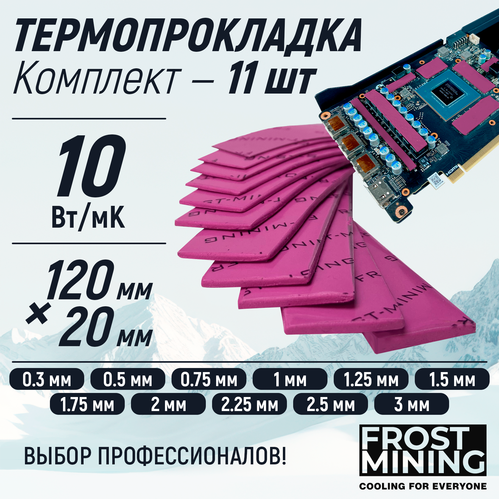Набор термопрокладок FrostMining Regular Thermal Pads V4 10Вт/мК 120х20 11шт информация: