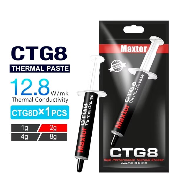 Термопаста Maxtor CTG8 4 грамма, теплопроводность 12.8 W/m-K + Набор 999 ₽