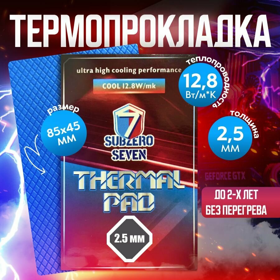 Термопрокладка "Subzero Seven Cool" для видеокарт и ноутбуков, 2,5 мм, 12,8 Вт/мК информация: