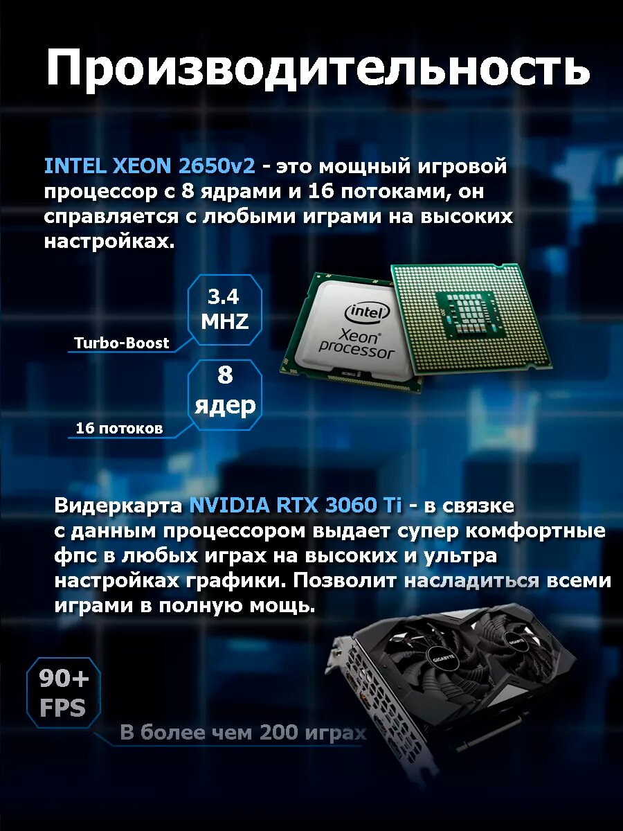 RTX 3060 Ti 32GB 512SSD 2650v2 Игровой компьютер информация: