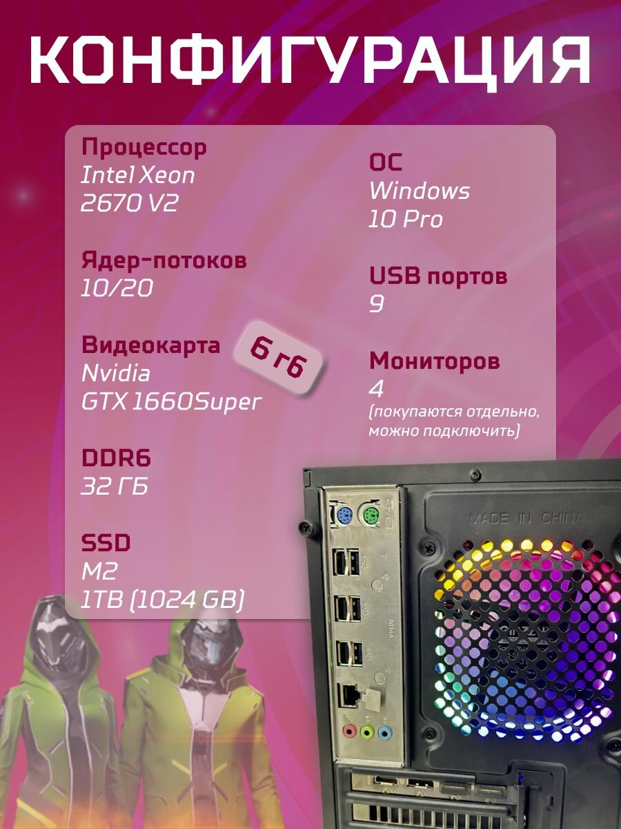 Игровой компьютер юкомс i7 2600, GTX 1050 2GB, SSD 128GB, 16GB DDR3, БП TT450 450W, win 10 pro, Игровой юкомс чёрный